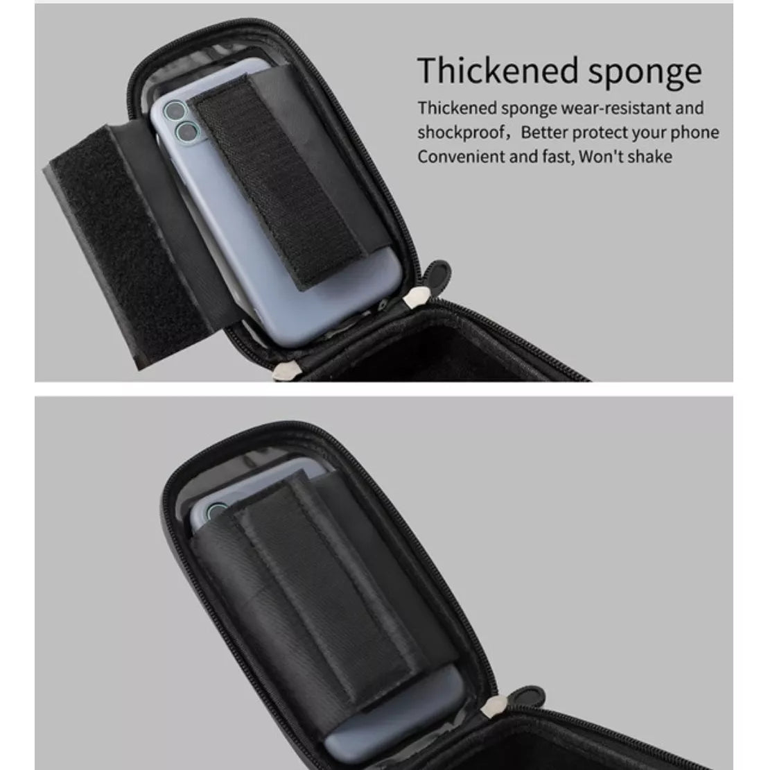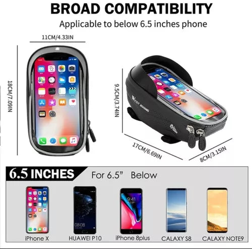 Con una correa de instalación ajustable, esta bolsa se adapta fácilmente a diferentes tipos de manillares. Su capacidad de 1.8 litros es ideal para almacenar tu teléfono inteligente, cartera, llaves y más, siendo compatible con dispositivos de 5.0 a 7.0 pulgadas.